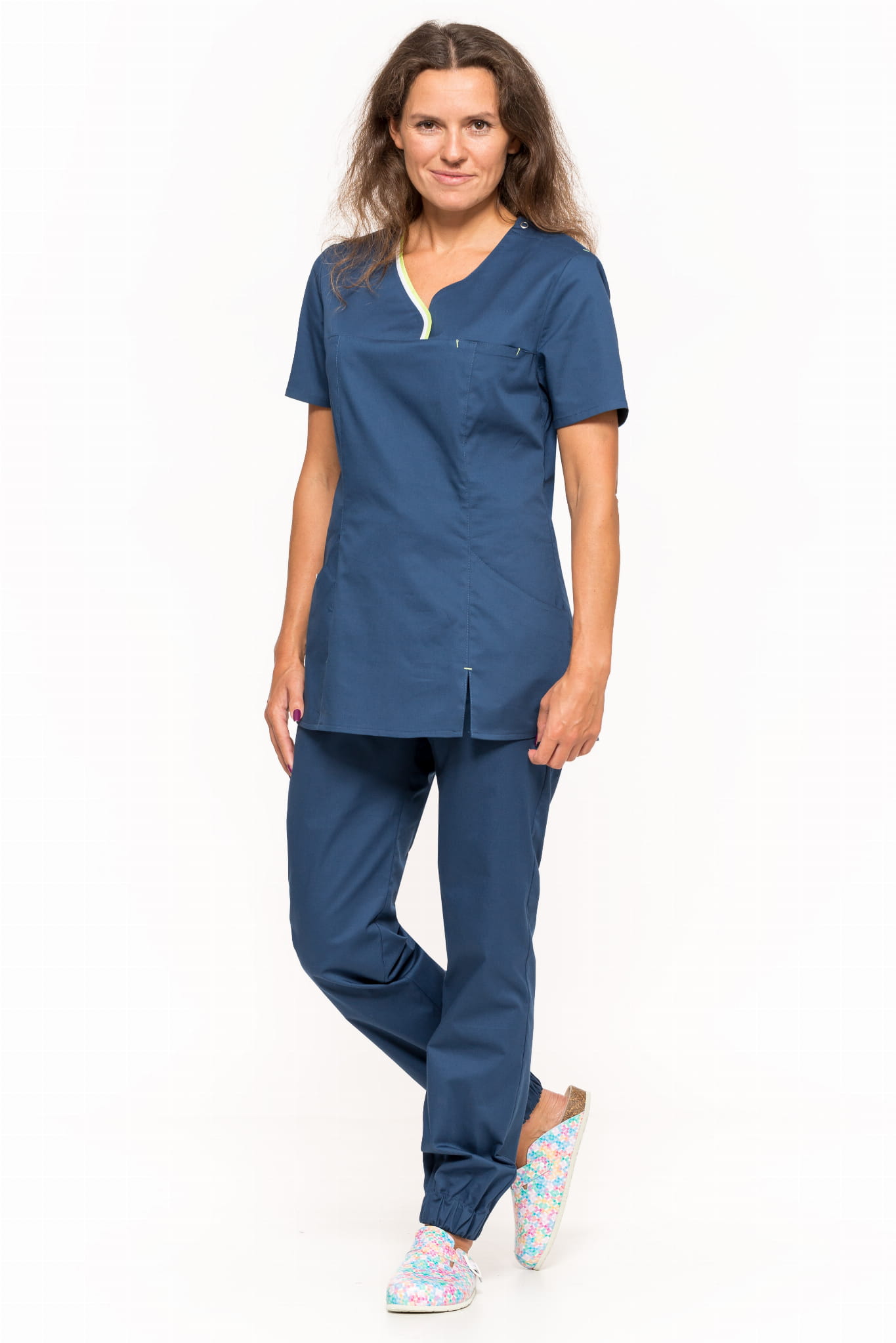 Dagna to propozycja dla profesjonalistek, które chcą wyglądać estetycznie, a jednocześnie potrzebują odzieży wygodnej i praktycznej w codziennej pracy. Model ma lekko dopasowany krój, który podkreśla kobiecą linię, ale nie ogranicza swobody ruchów – idealny do gabinetu, kliniki, przychodni czy branży beauty.