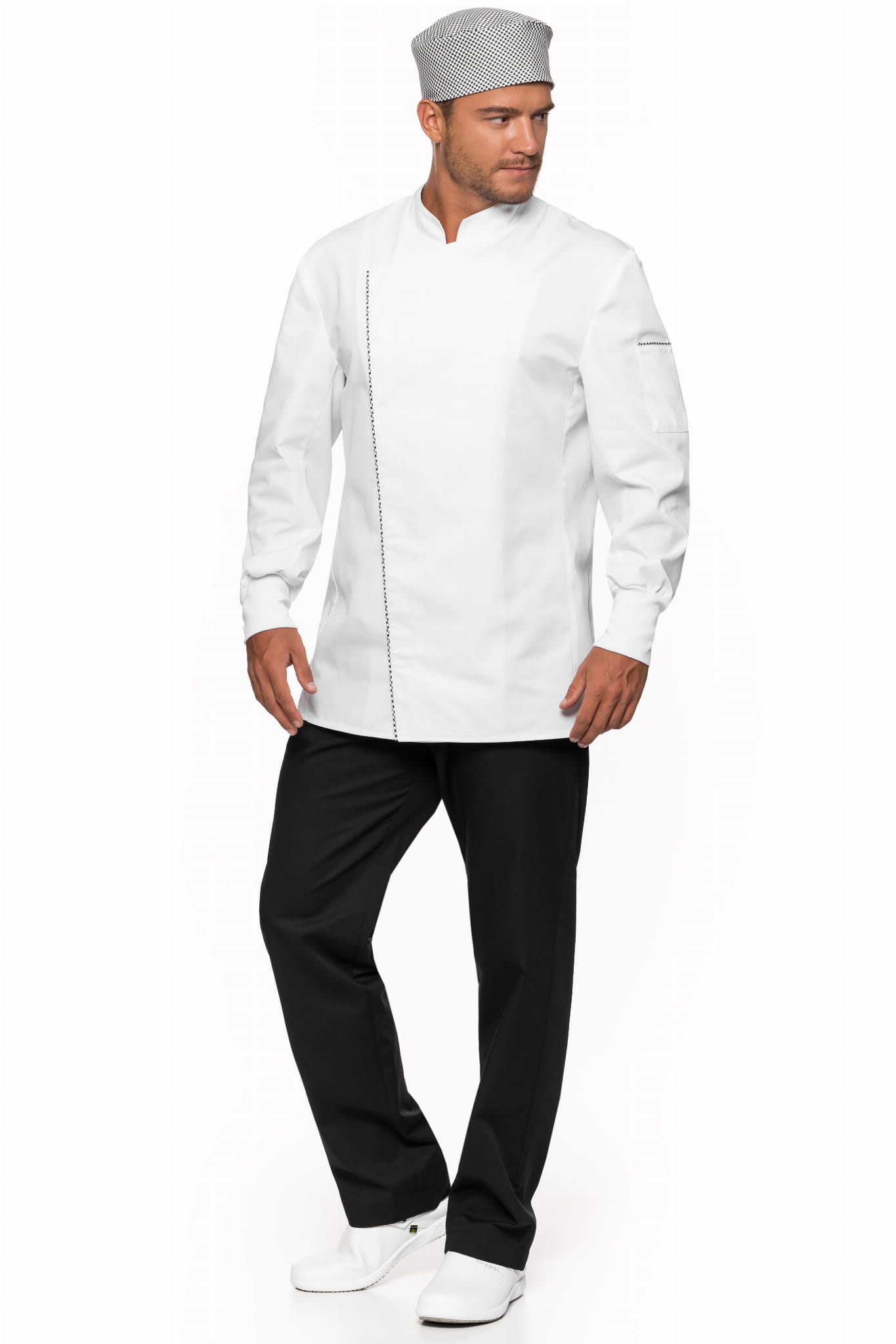 Bluza gastronomiczna Dawid to stylowa propozycja dla profesjonalistów, którzy cenią wygodę i elegancję w pracy. Wykończona stójką, z wygodnym zapięciem na napy, zapewnia łatwość użytkowania i estetyczny wygląd.