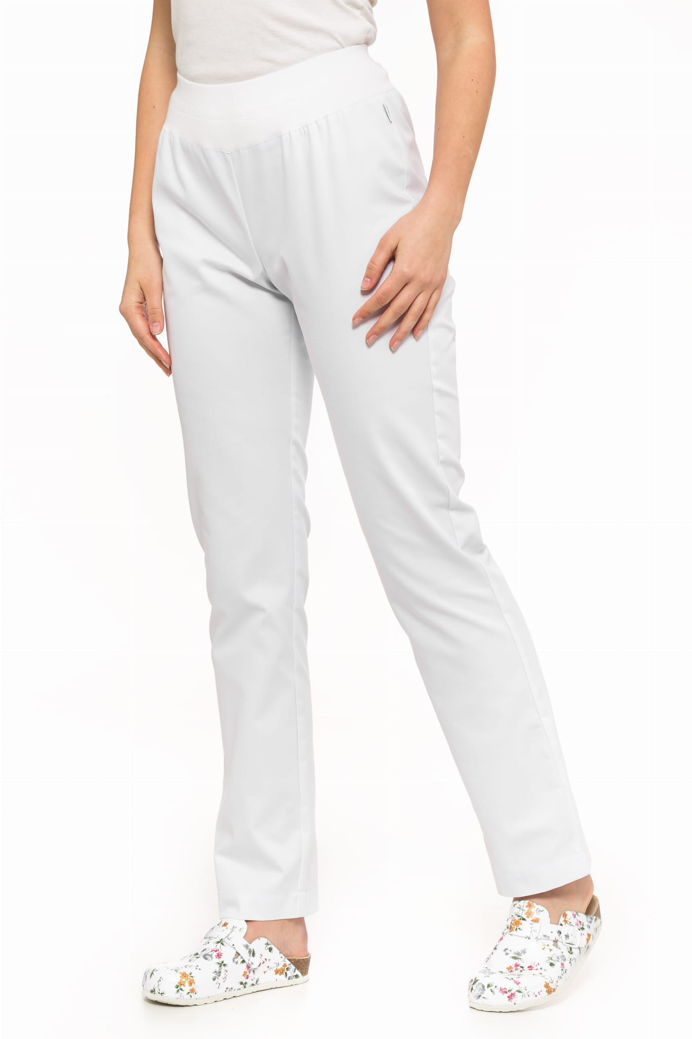 Spodnie medyczne 07- spodnie medyczne damskie ze ściągaczem - proste, wygodne spodnie - elastyczny ściągacz wszyty zamiast paska zapewnia komfort i swobodę w pracy.
