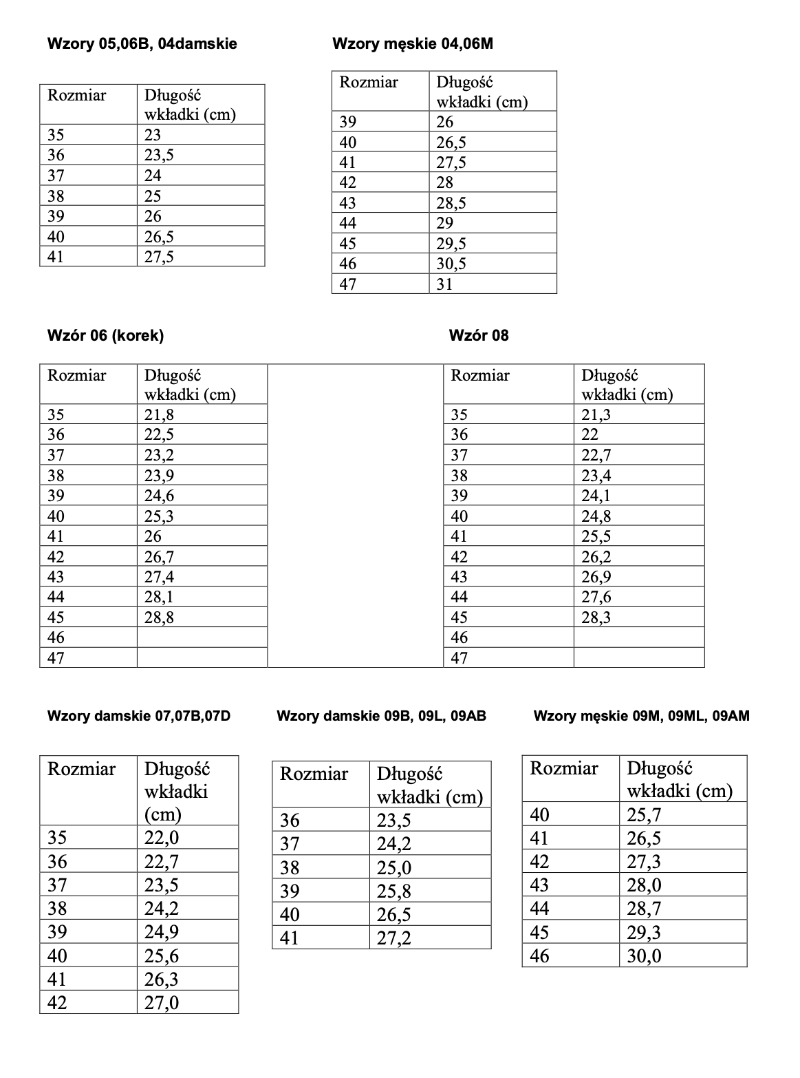 Poniżej zamieszczona została tabela rozmiarów obuwia.