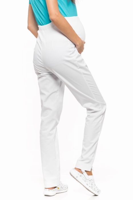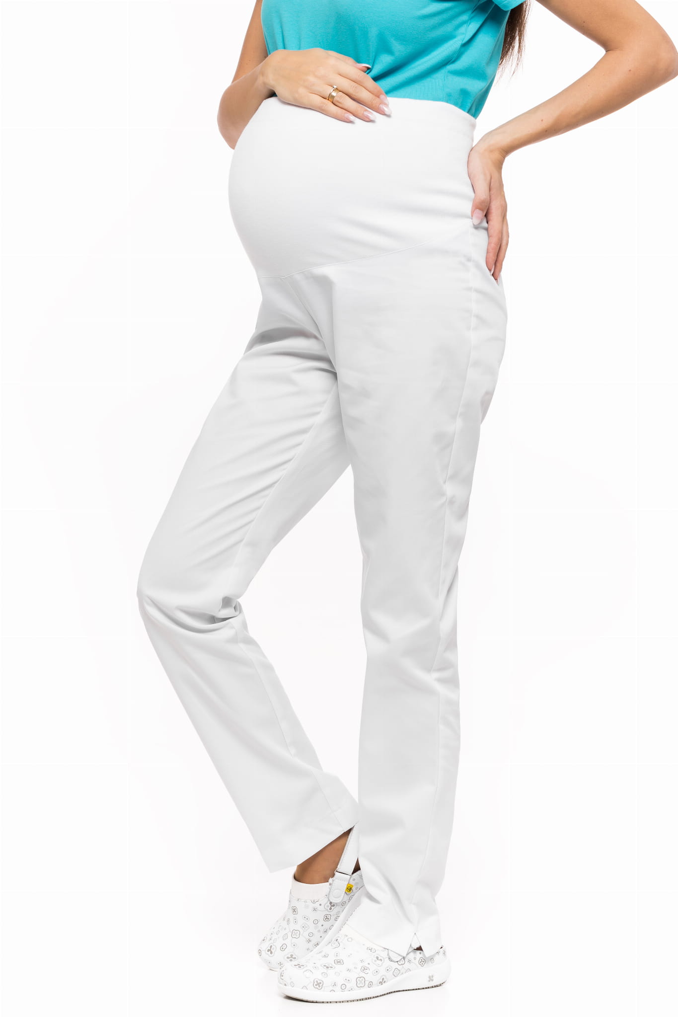 Zapewnij sobie maksymalną wygodę w pracy dzięki spodniom zaprojektowanym z myślą o szczególnych potrzebach kobiet w ciąży. Nasz model łączy profesjonalny krój medyczny z innowacyjnym, elastycznym panelem, który delikatnie otula brzuszek, nie powodując ucisku.