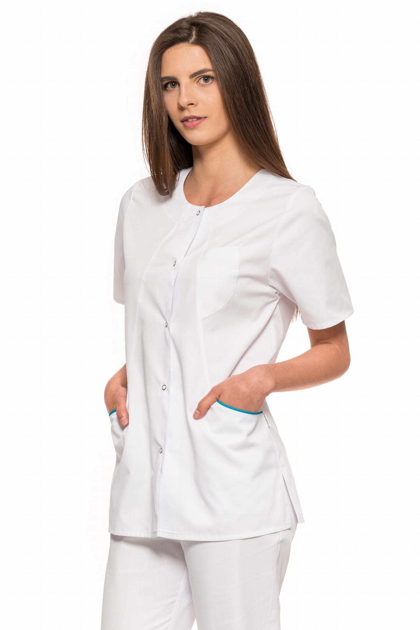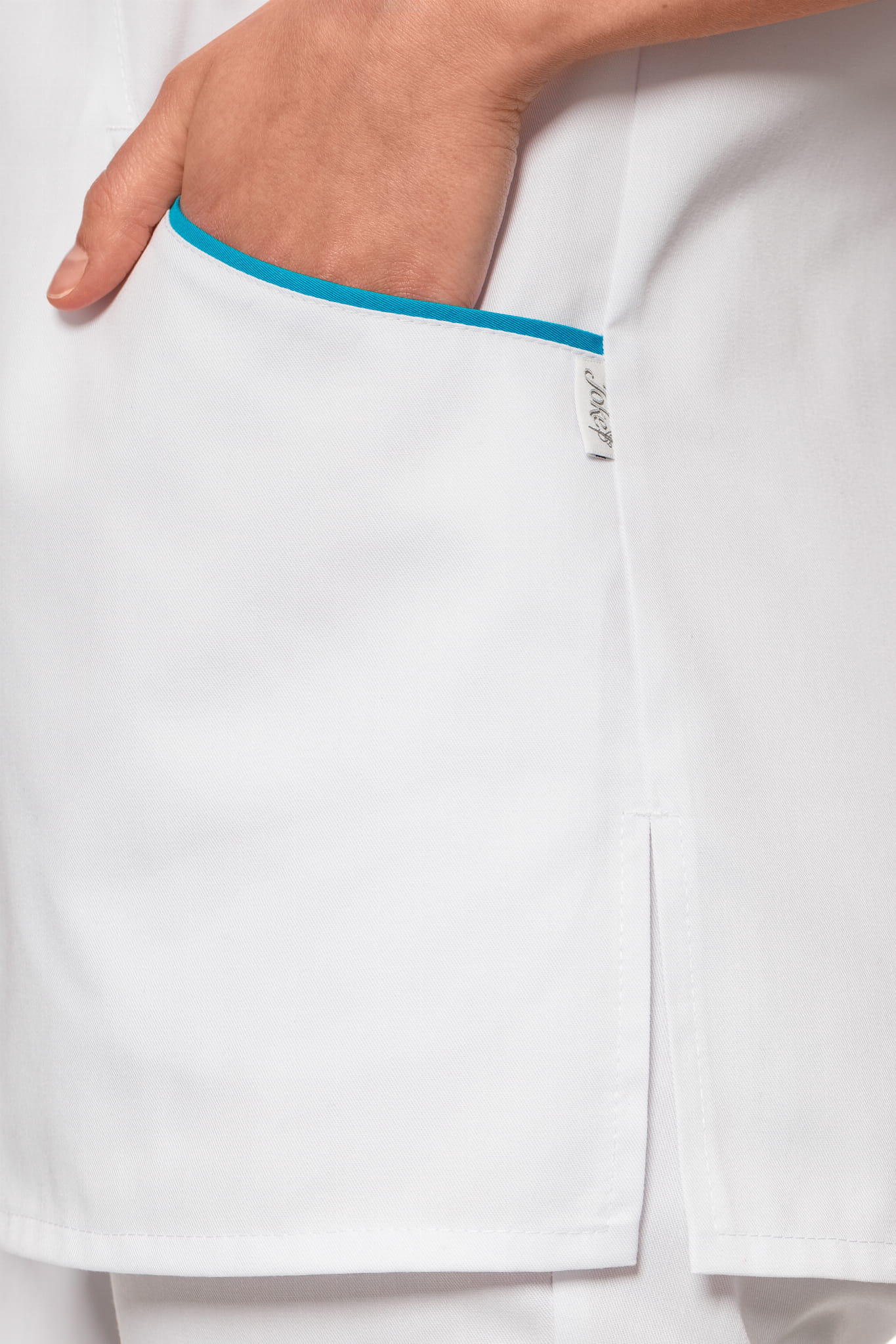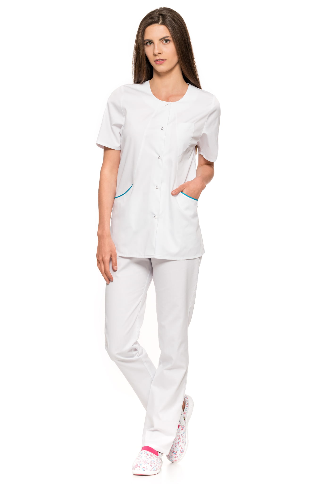 Szukasz odzieży medycznej, która nie krępuje ruchów, a jednocześnie prezentuje się nowocześnie? Żakiet medyczny Teresita został zaprojektowany z myślą o pełnej swobodzie. Jego charakterystyczny krój, delikatnie poszerzany ku dołowi, zapewnia przewiewność i komfort podczas najbardziej intensywnego dnia pracy. Każdy żakiet to produkt wyprodukowany w Polsce przez markę Joke, co gwarantuje najwyższy standard wykonania.