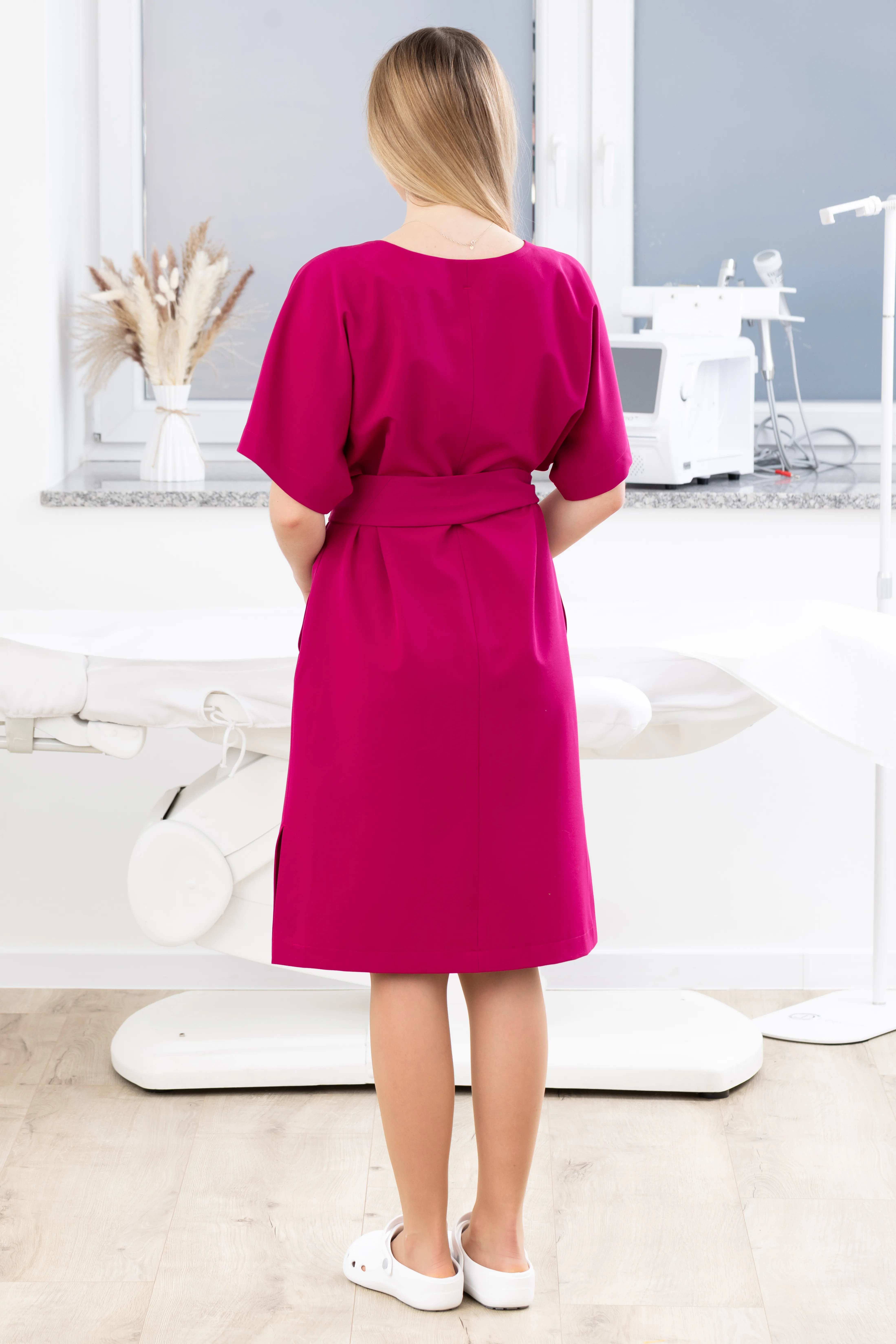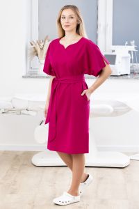 Sukienka Medyczna Amelia to definicja nowoczesnej wygody w pracy. Luźny, swobodny fason typu oversize w połączeniu z fantazyjnym dekoltem w serek tworzy projekt niezwykle stylowy i funkcjonalny. Dzięki wiązaniu w talii, sukienka Amelia pozwala na dowolną stylizację – od zwiewnej formy po mocno podkreśloną sylwetkę. Idealna dla sektora medycznego, prestiżowych salonów SPA oraz nowoczesnej kosmetologii.