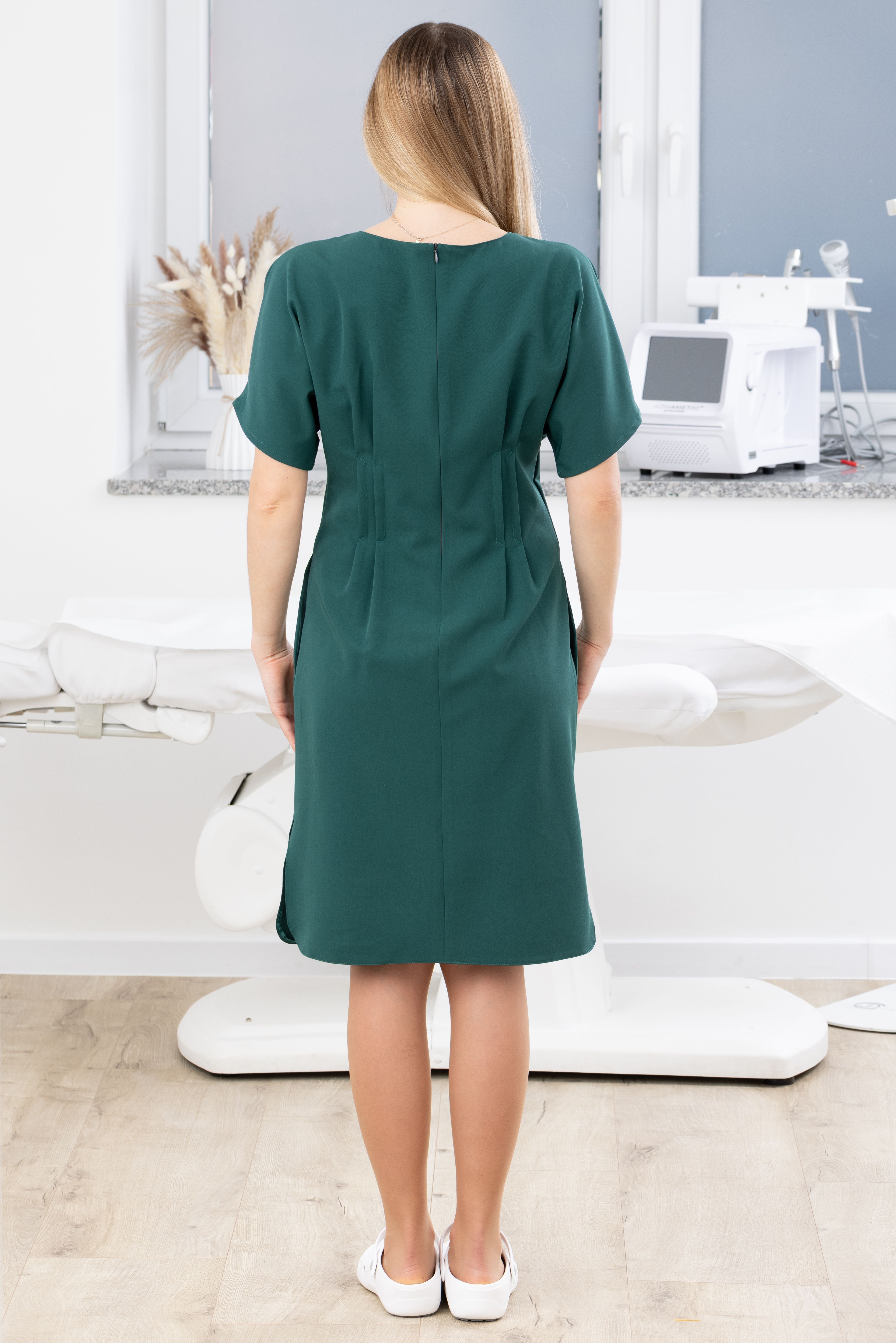 Szukasz odzieży medycznej, która nie tylko profesjonalnie wygląda, ale zapewnia pełną swobodę przez cały dzień pracy? Sukienka medyczna Laura to połączenie minimalistycznego designu z przemyślanymi rozwiązaniami konstrukcyjnymi. Zaprojektowana z myślą o kobietach pracujących w sektorze ochrony zdrowia, estetyki oraz kosmetologii.