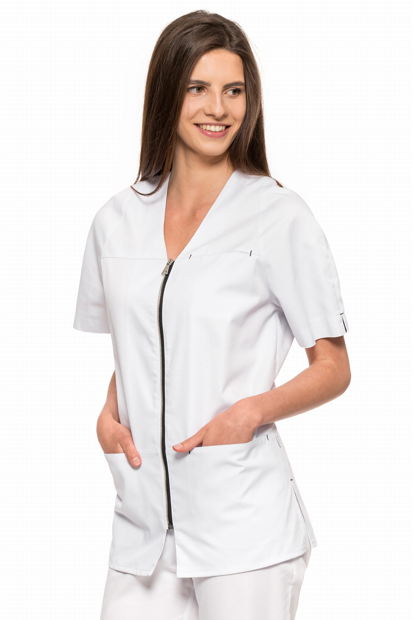 Poznaj model, który redefiniuje komfort pracy. Żakiet medyczny Grażka o prostym kroju to idealne rozwiązanie dla kobiet, które potrzebują maksymalnej swobody ruchów. Dzięki raglanowym rękawom i dwukolorowemu suwakowi, żakiet ten łączy sportowy luz z elegancją wymaganą w zawodach medycznych.